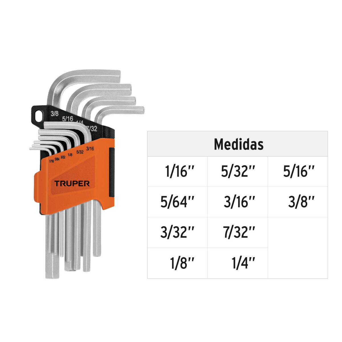Juego 10 llaves allen std punta hexagonal con organizador Truper
