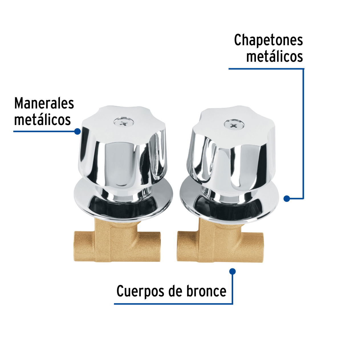 • Manerales y chapetones metálicos con acabado cromo