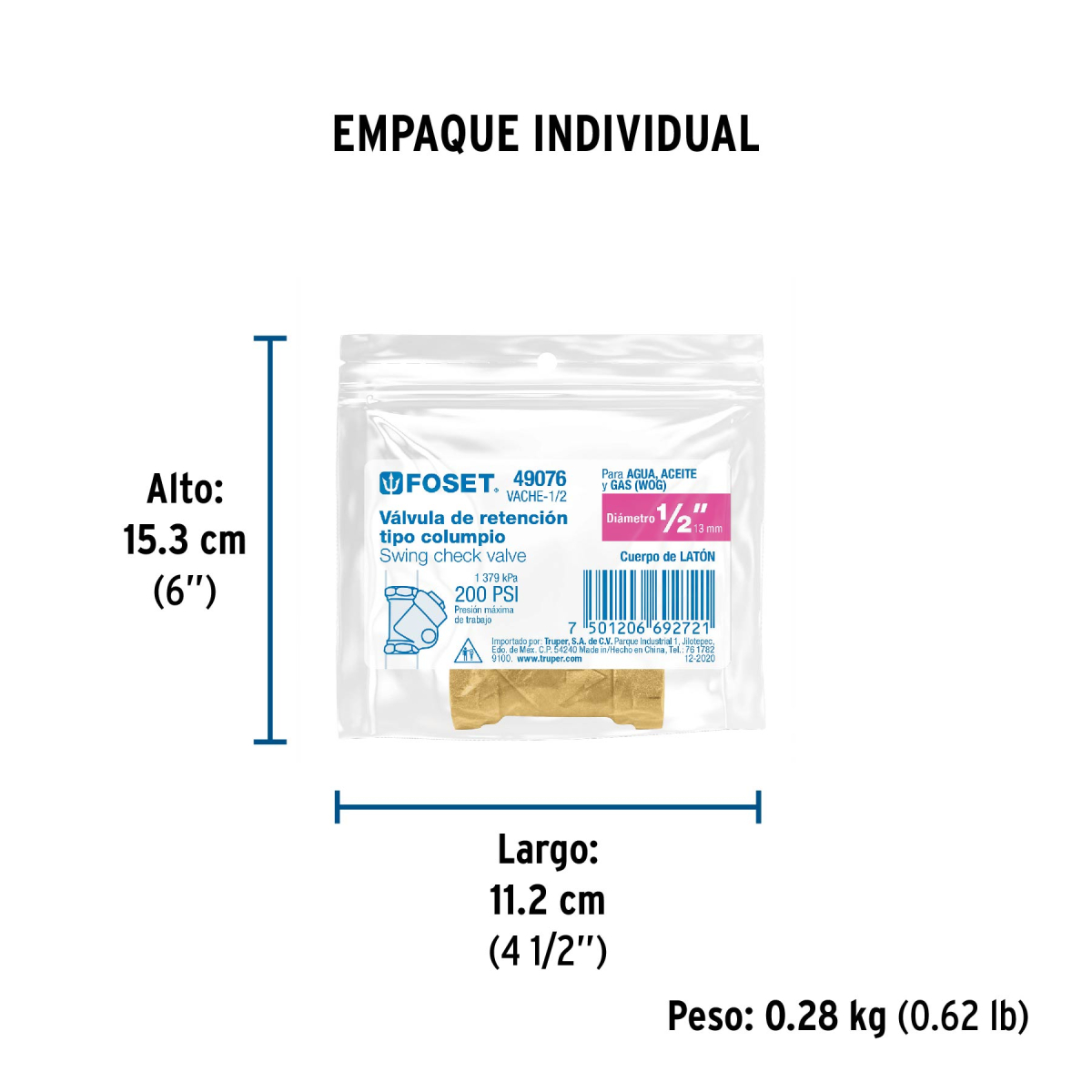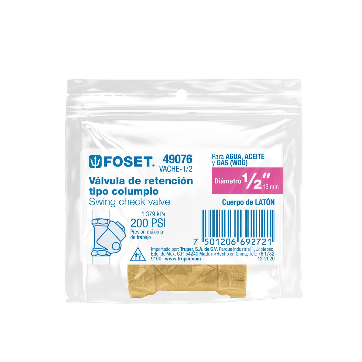 Válvula check de latón de 3/4″, Foset