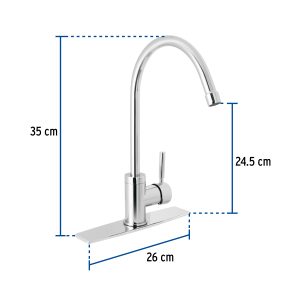Mezcladora fregadero cromo cuello largo, palanca, Aqua Foset