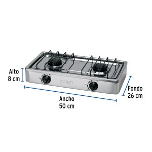 Parrilla de gas de sobreponer 2 quemadores, inox, Foset